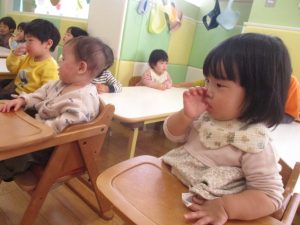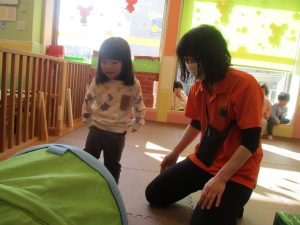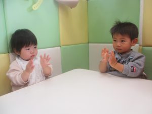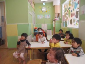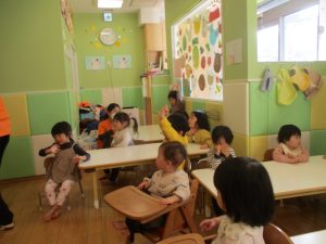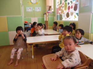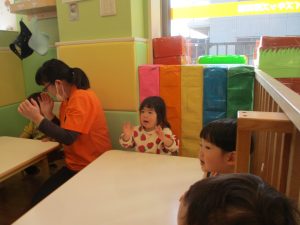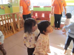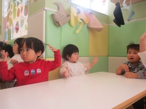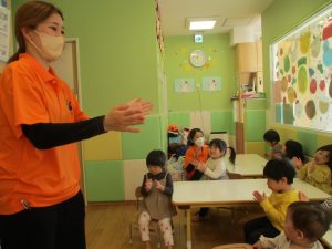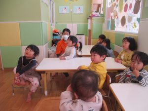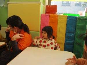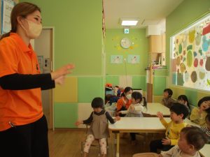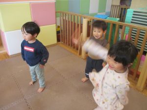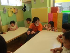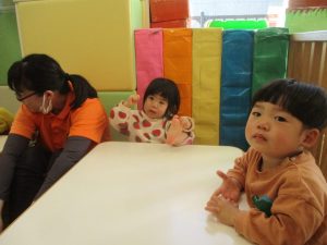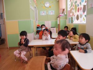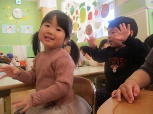 今月のリトミックでは、お子様達もお馴染みの「ゆき」と「たきび」の歌を歌って盛り上がったり、低い音と高い音の聞き分けに挑戦したりしております。