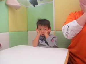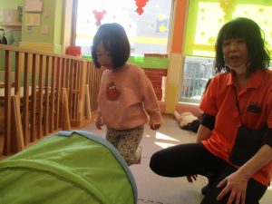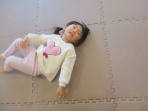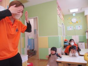 ♪「Head Shoulders,Knee,And Toes」の曲に合わせて体の部位をタッチしてみたり、フラッシュカードを使って頭からつま先までの英単語を覚えて言っております♪