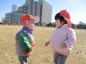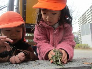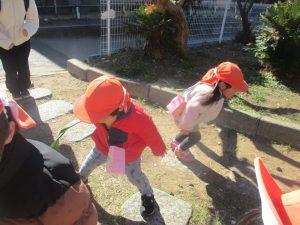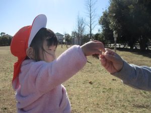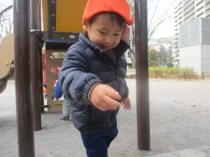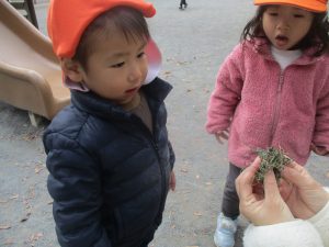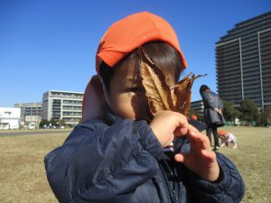 気持ちの良い快晴の下、自然物探しを中心に公園内を楽しく散策しました。