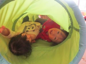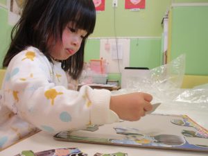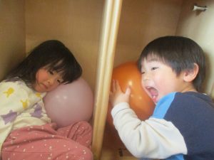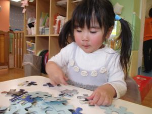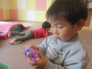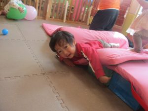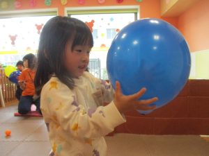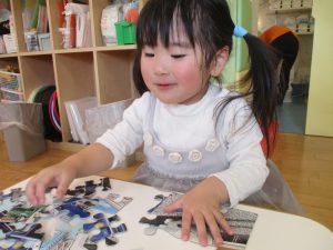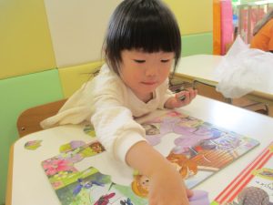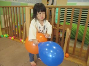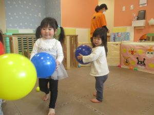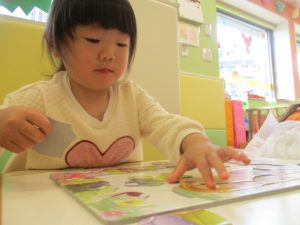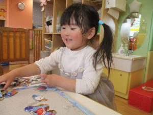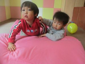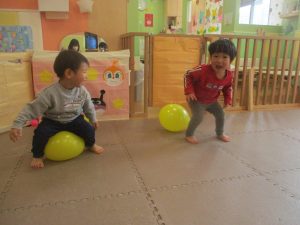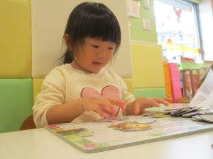 風船やサーキット遊びでたくさん体を動かしたり、2歳児さんはパズル遊びに夢中でした。