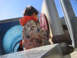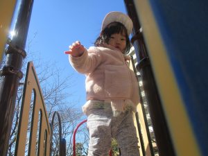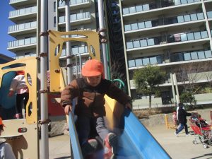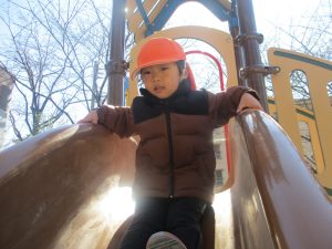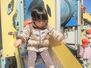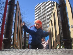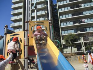 気持ちの良い快晴の下、固定遊具を使用してたくさん体を動かしました。