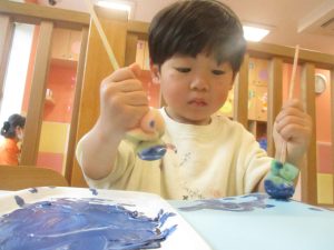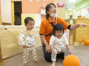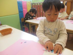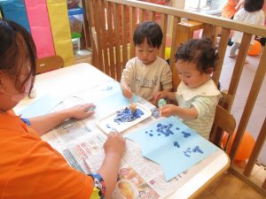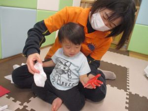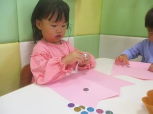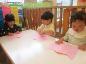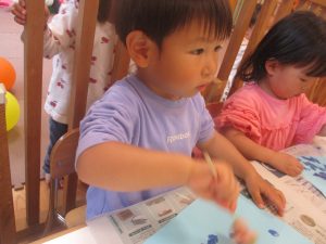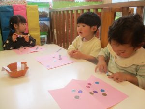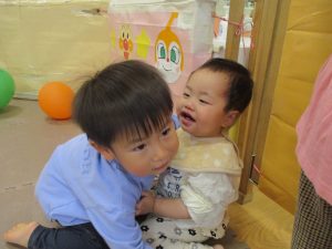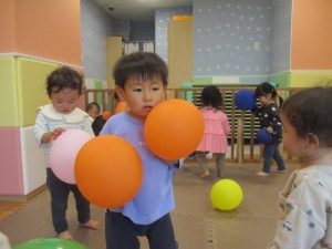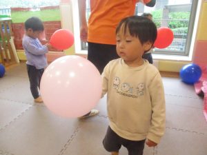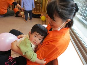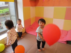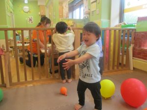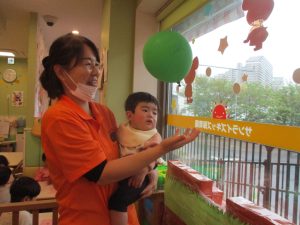 風船やサーキット遊びでたくさん体を動かしたり、年齢別にこいのぼり製作を楽しみました。