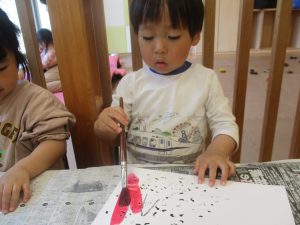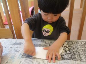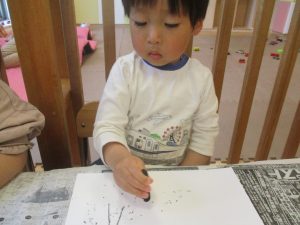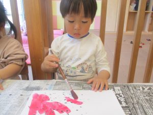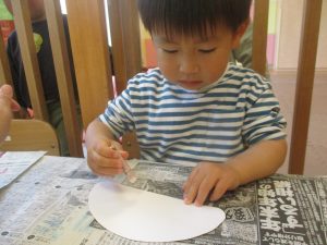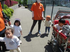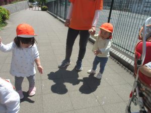 室内で5月製作を楽しんだり、園周辺の戸外散歩を行いました。