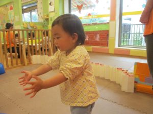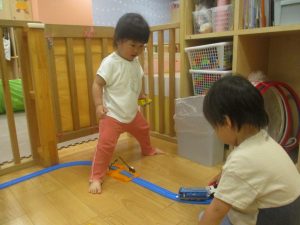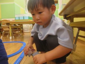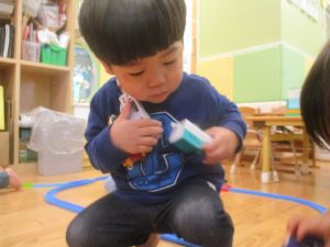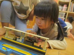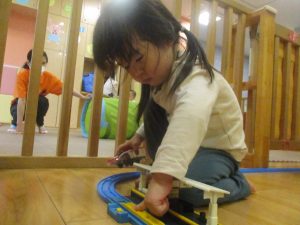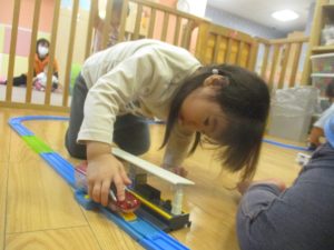 サーキット遊びでたくさん体を動かしたり、大好きな電車玩具を使用して楽しそうに遊んでおりました。