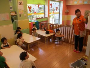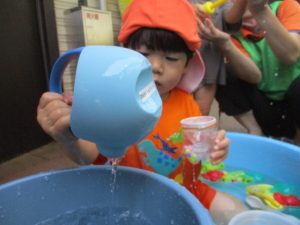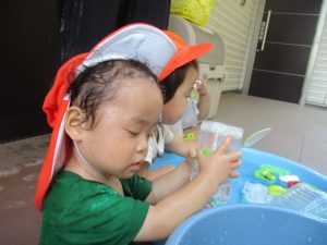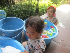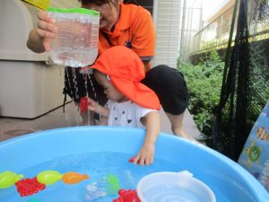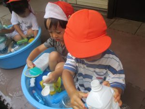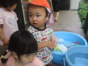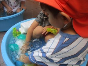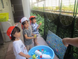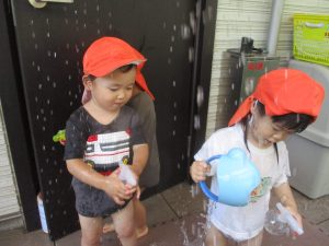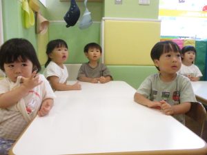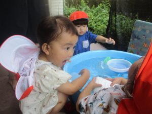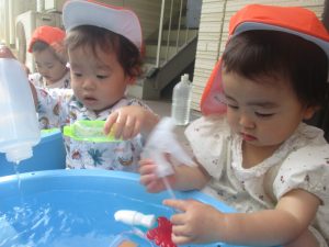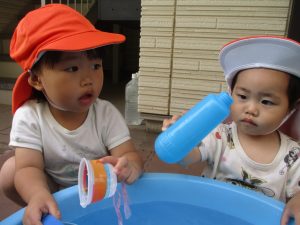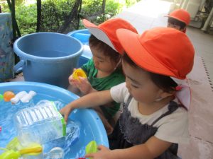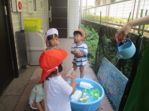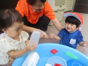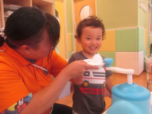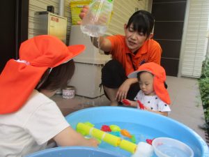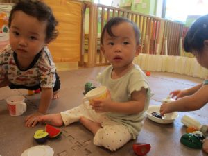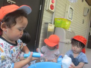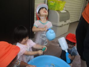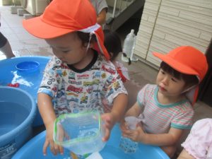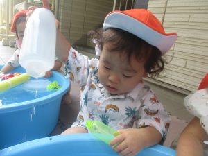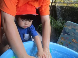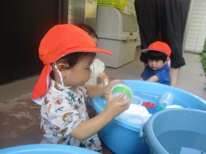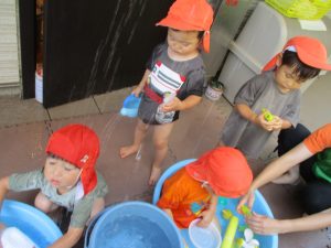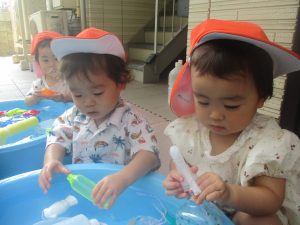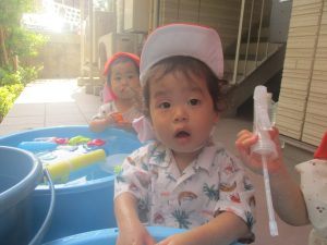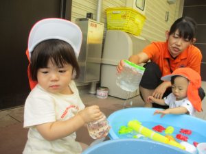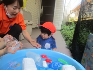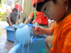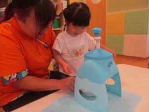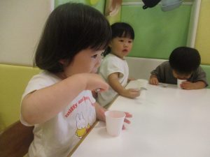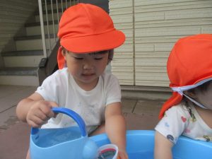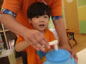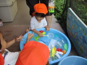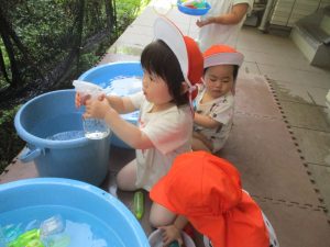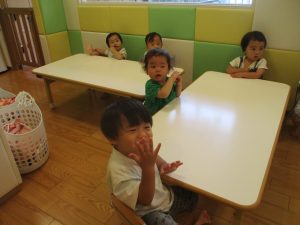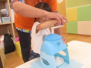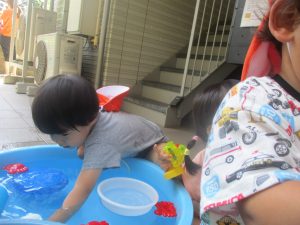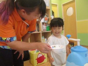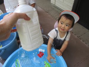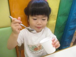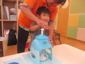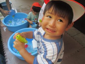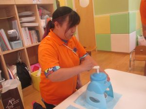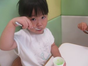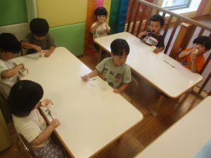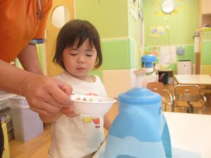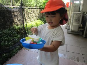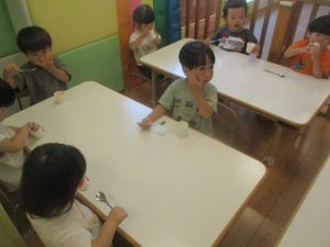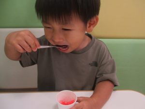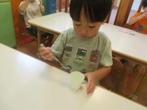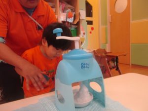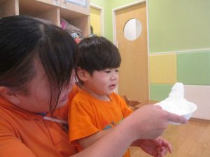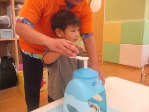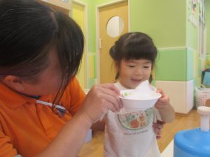 2歳児クラスにおいては「かき氷作り」も体験し、楽しい夏の思い出をまた1つ残せました。