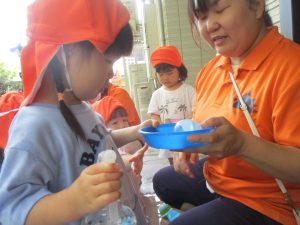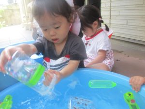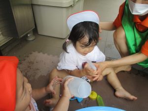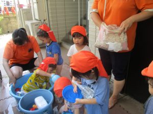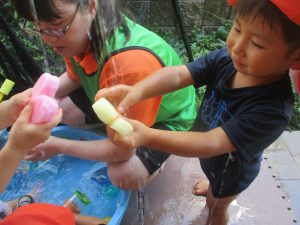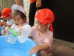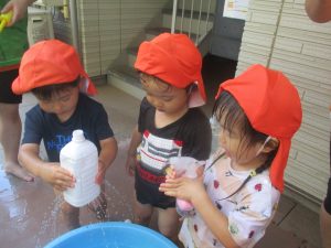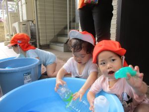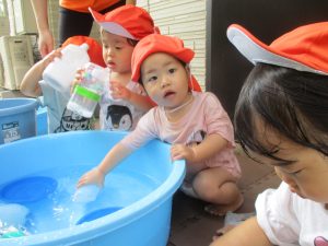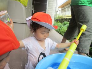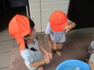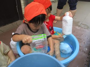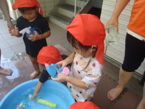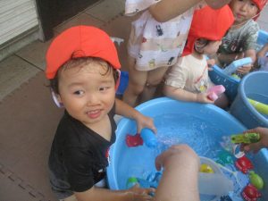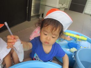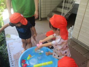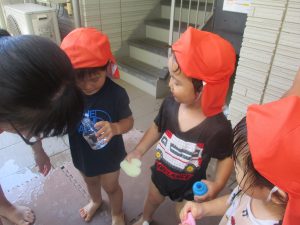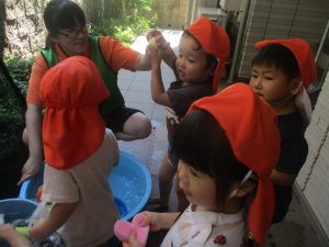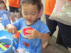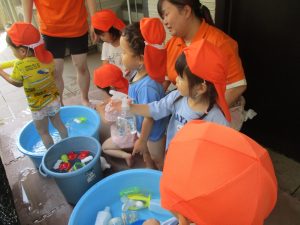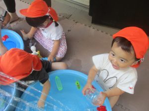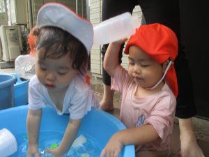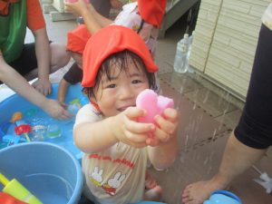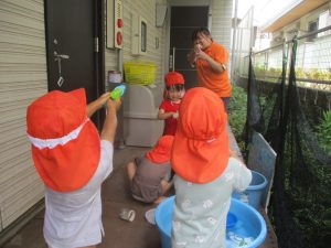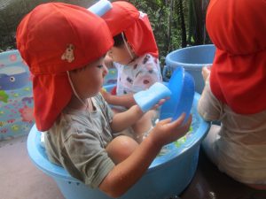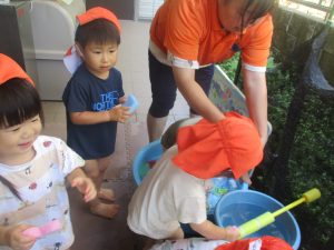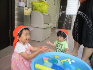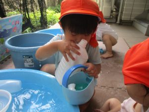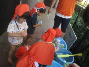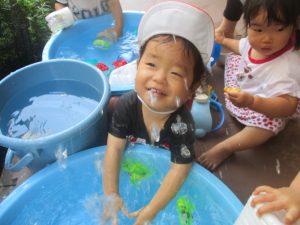 連日の水遊びにお子様達は夢中になっておられますが、迎えた8月も水遊びを中心に全身で8月summerを感じていきたいと思います。