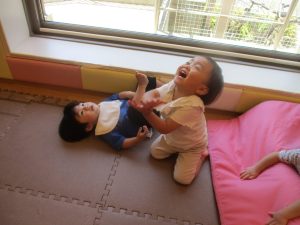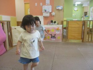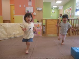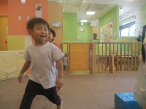 室内で過ごす際もタンバリンかけっこを行い、思い切り体を動かして遊びました。