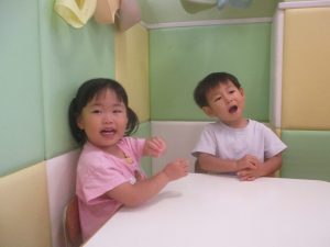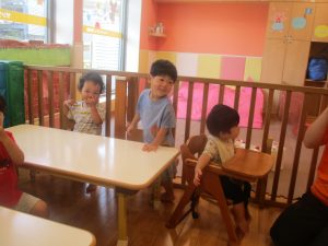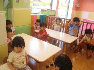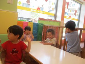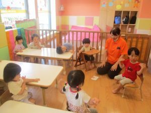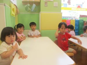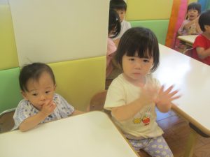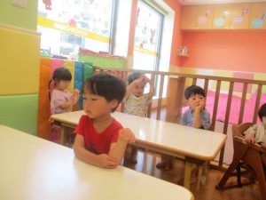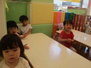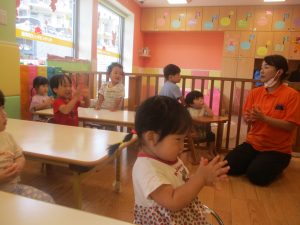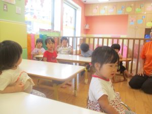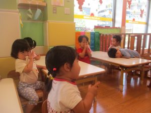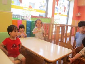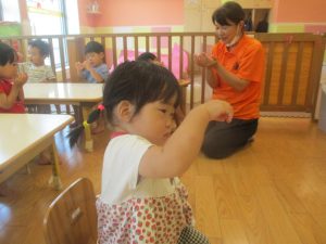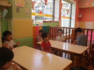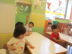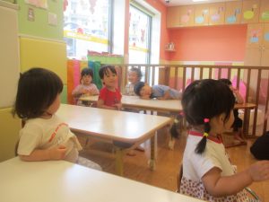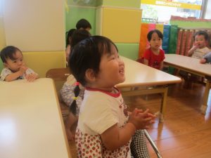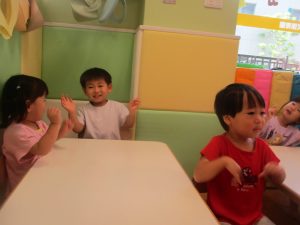 小さいクラスのお友だちが、「わんわん♡」、「ぴょんぴょん♪」と、先生やお友だちを真似して頑張る姿がとても素敵です♪