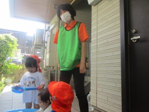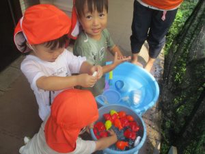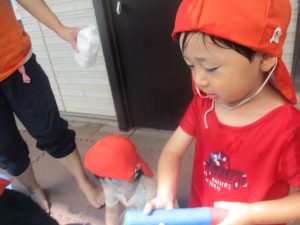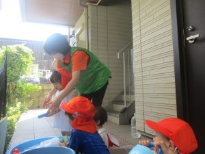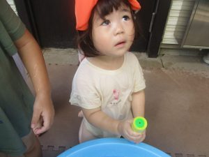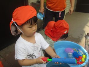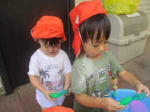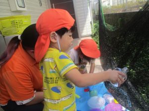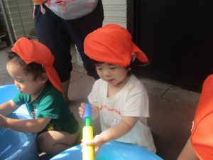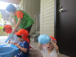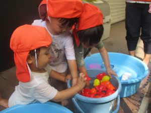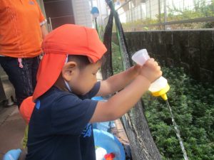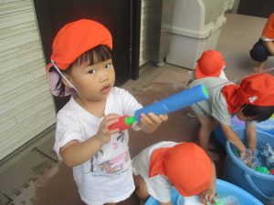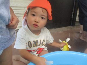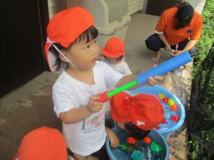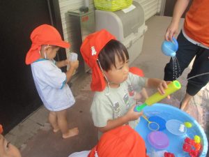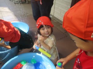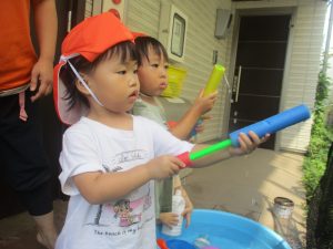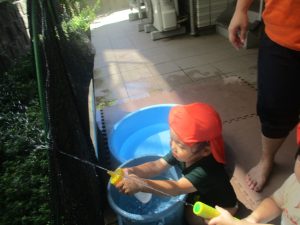 日中は水遊びを行ないました。