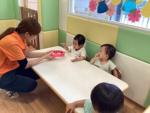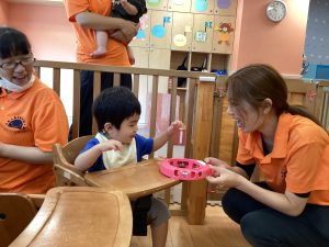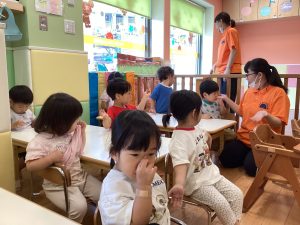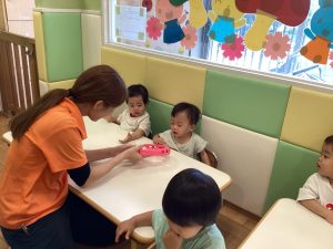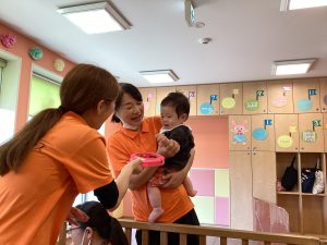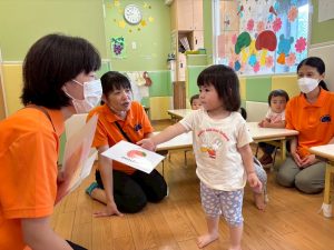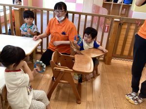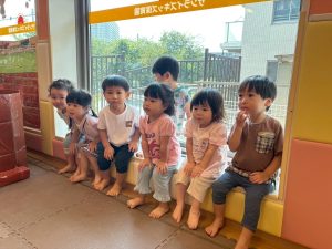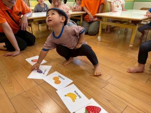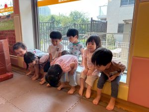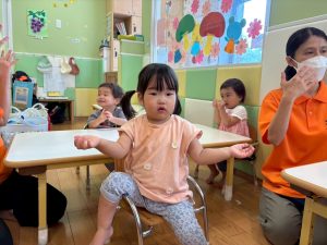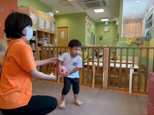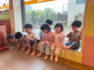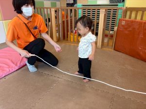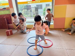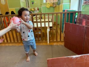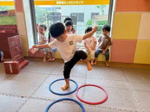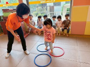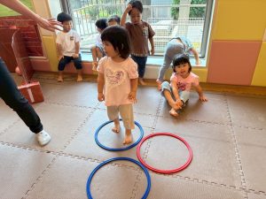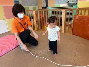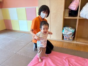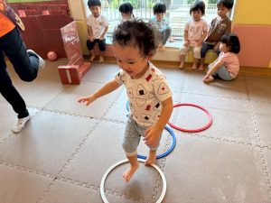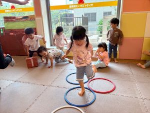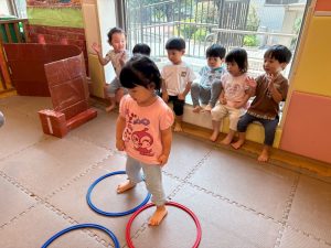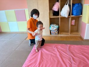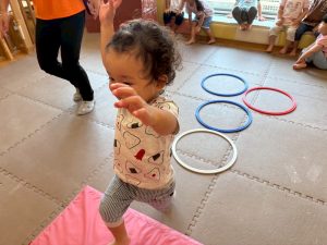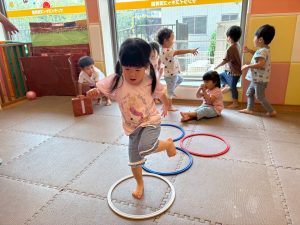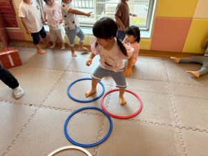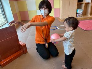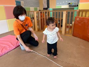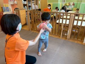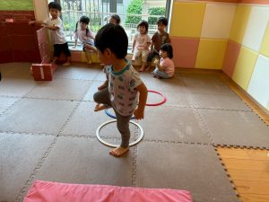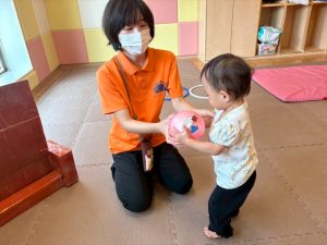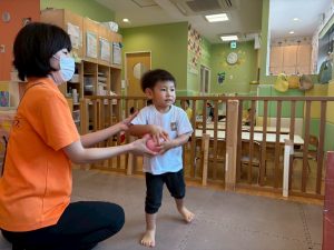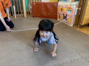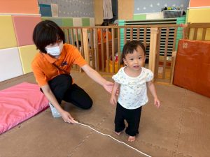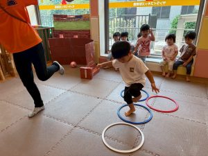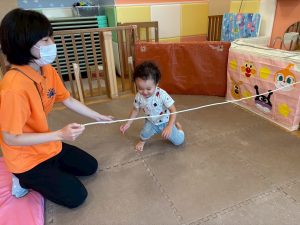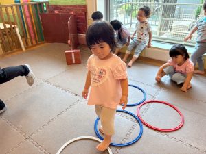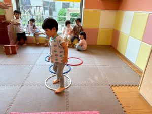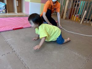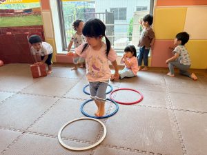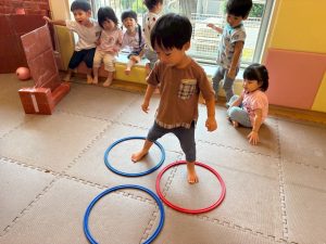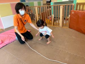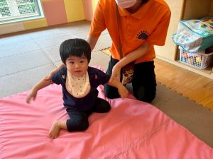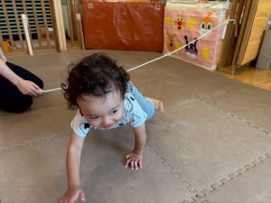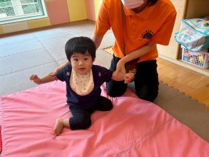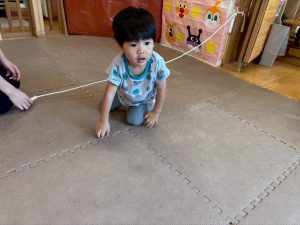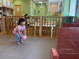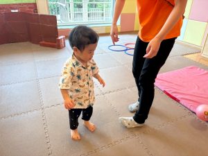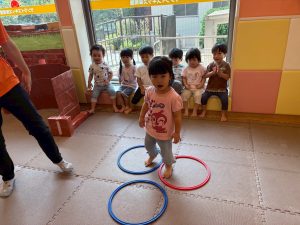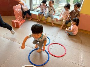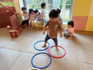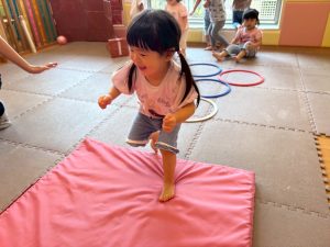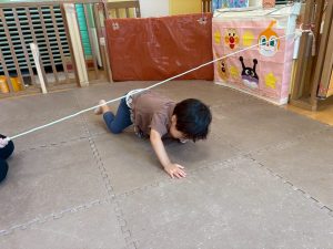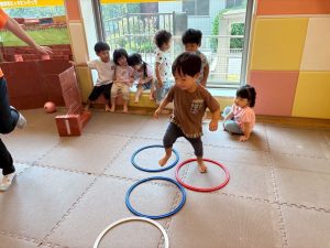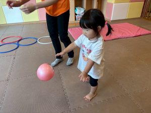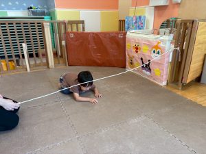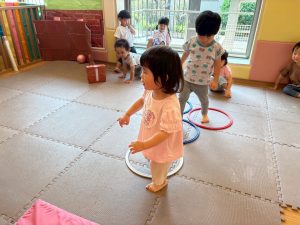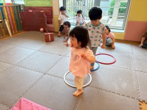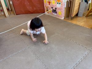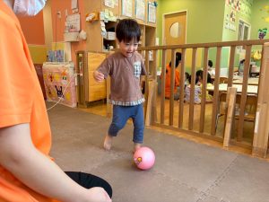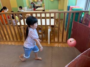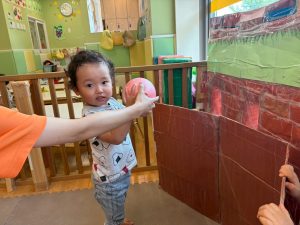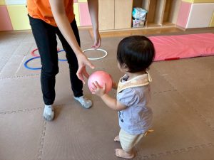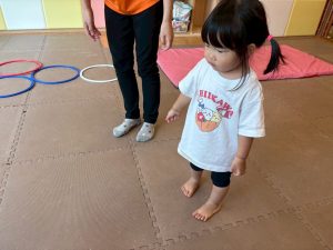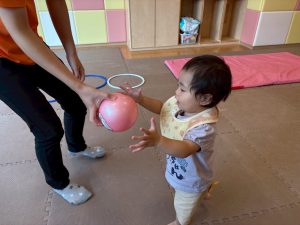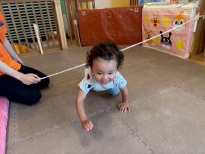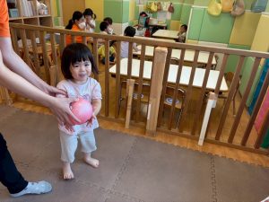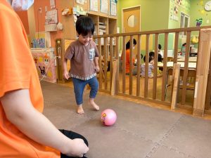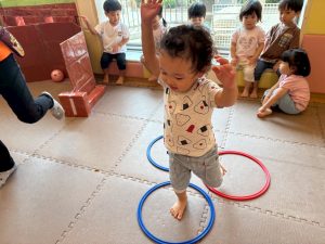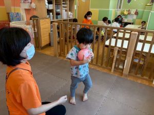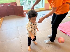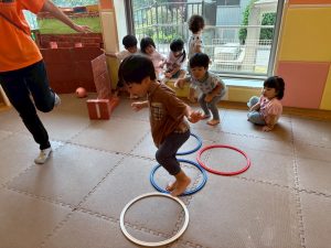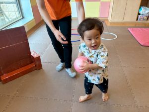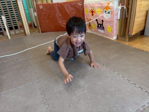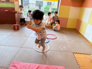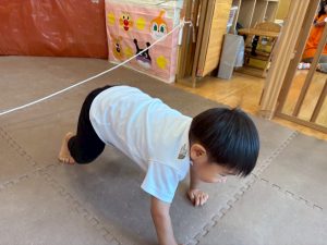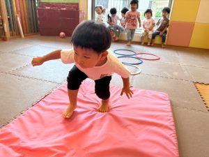 0、1歳児クラスのお友だちはハイハイやボール投げを強化し、2歳児クラスのお友だちは、”片足バランス”など少し難易度を上げた活動にも挑戦しております☆