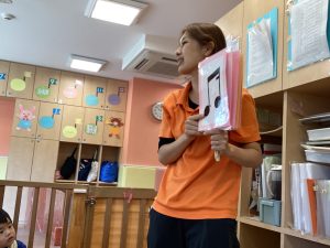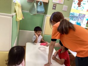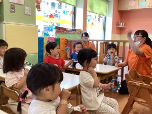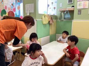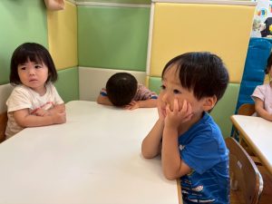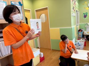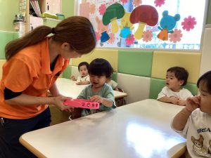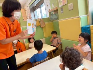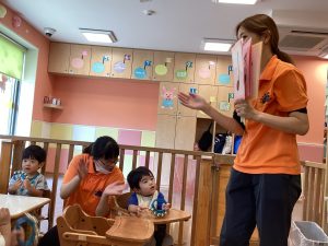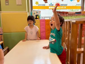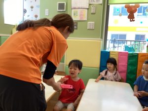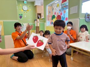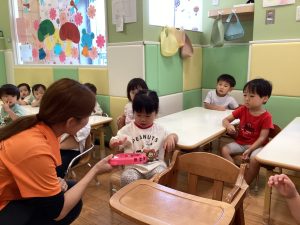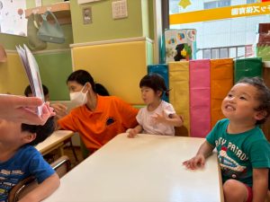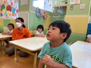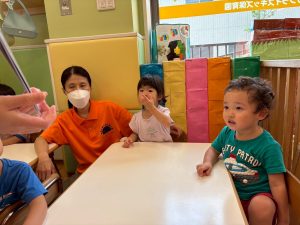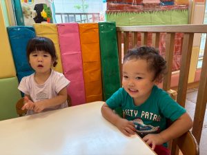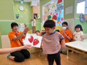 復習も兼ねて、「White Dog」「2dogs」などの違う種類の2単語を組み合わせた英単語にも挑戦中でございますが、2歳児クラスのお友達は選び取りクイズも頑張っております♪