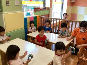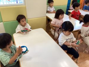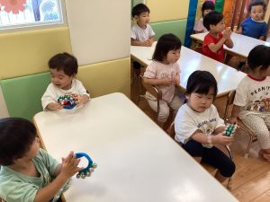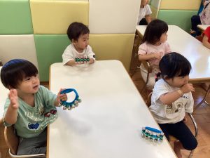 楽器を使った活動も盛り上がっておりますよ♪秋は、手作り楽器の活動にも挑戦したいと思っております☆