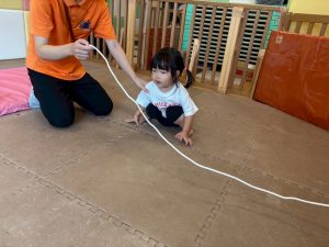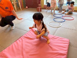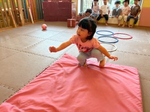 今月の体操でも今までの振り返りを行いながら、マットや縄、ボールを使った活動に取組中♪