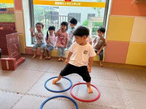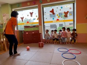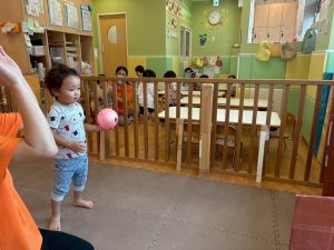 0、1歳児クラスのお友だちはハイハイやボール投げを強化し、2歳児クラスのお友だちは、”片足バランス”など少し難易度を上げた活動にも挑戦しております☆