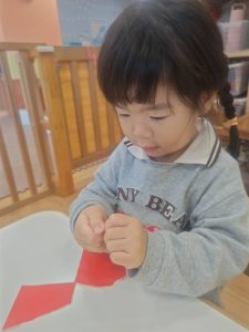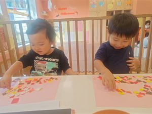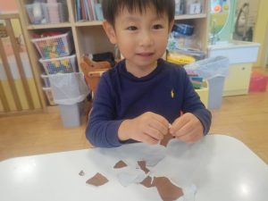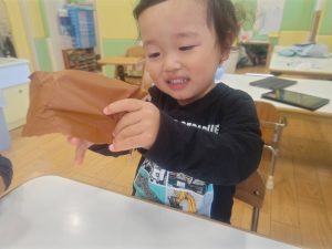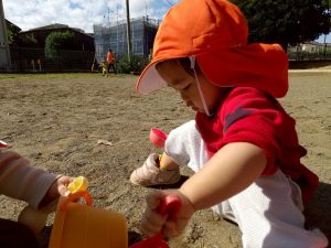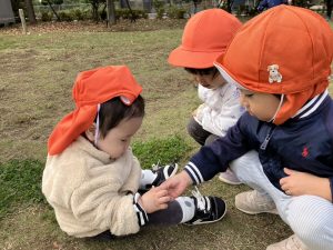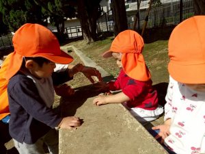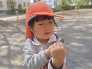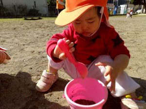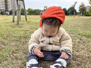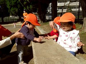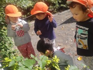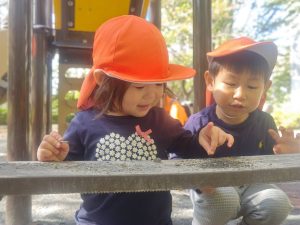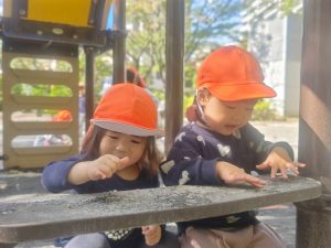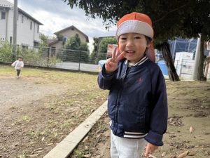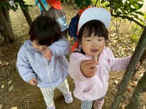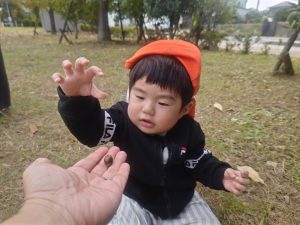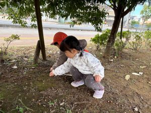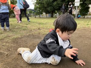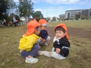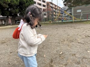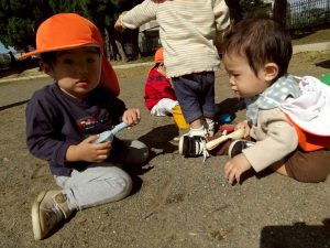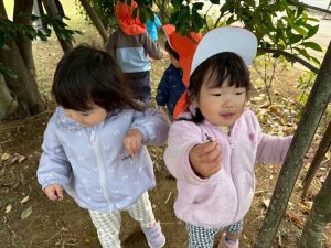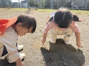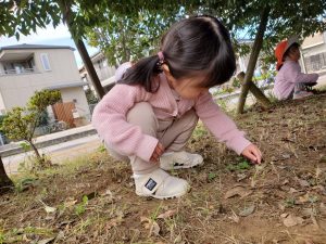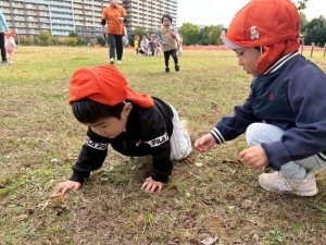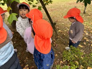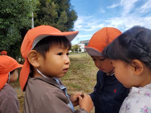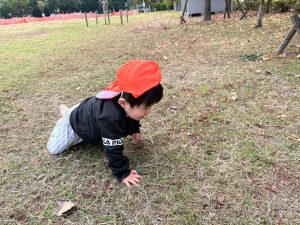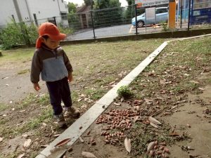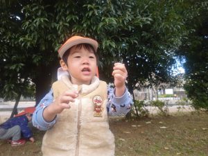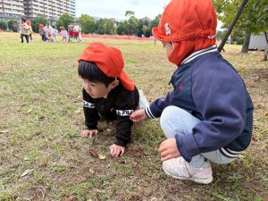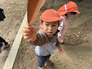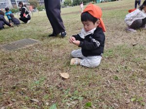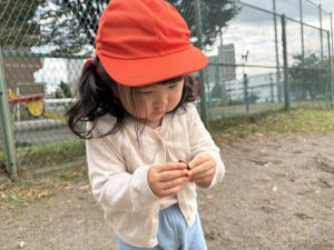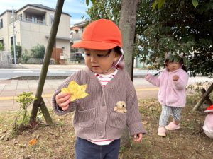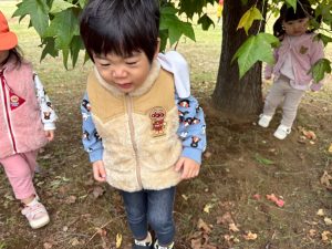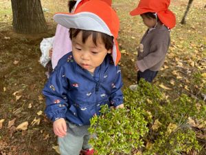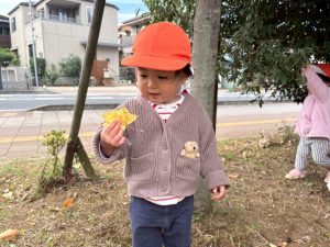 日に日に秋色も濃くなり、園周辺の公園では自然物探しに夢中です。