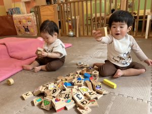0歳児クラスは室内でのんびりと過ごしました。