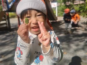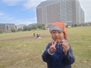 日中は防災公園にて過ごし、自然物探しを存分に楽しみました。