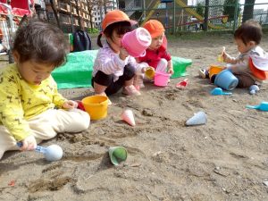 日中は年齢別に分かれて戸外活動を楽しみました。