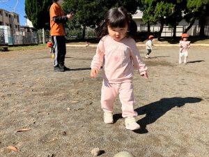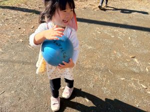 ゴムボールを使用して広場でのかけっこを存分に楽しみました。