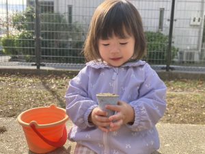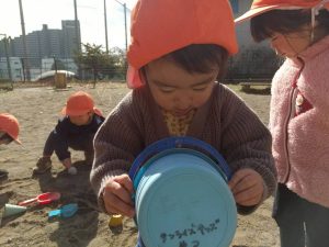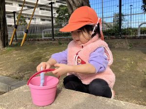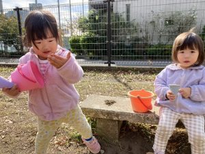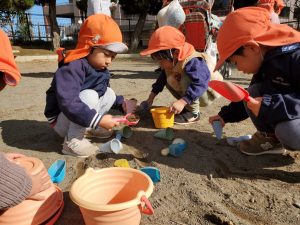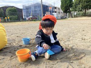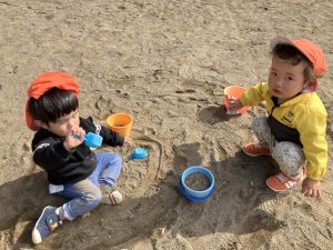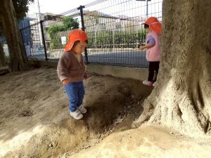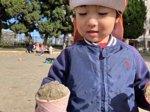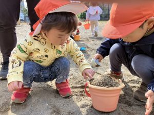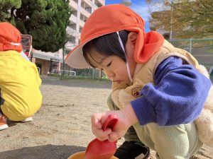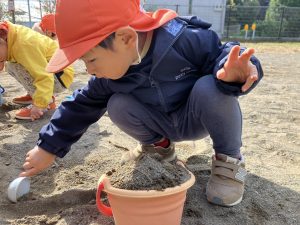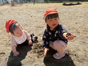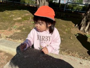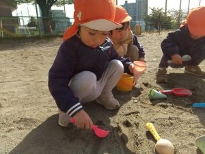 砂場でのままごと遊びや自然物探しを楽しみました。