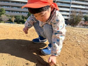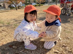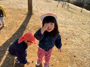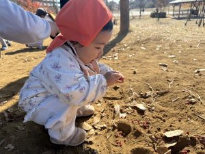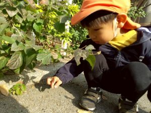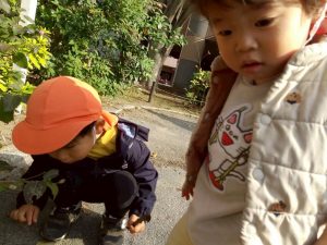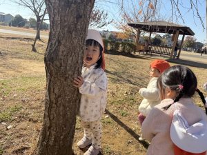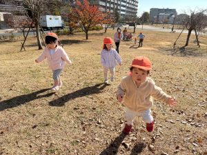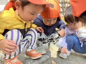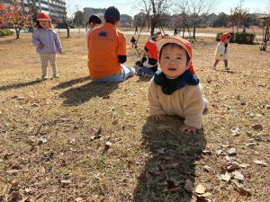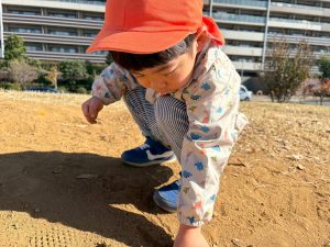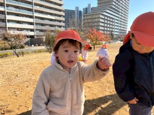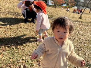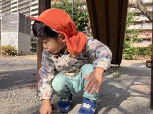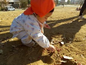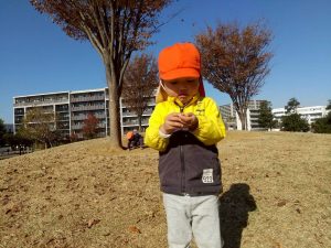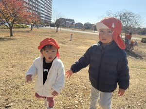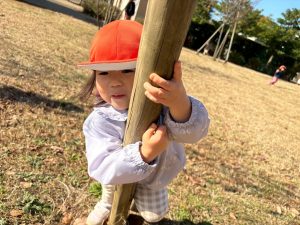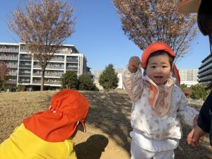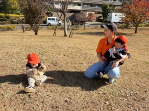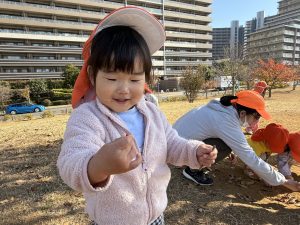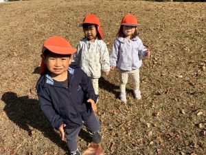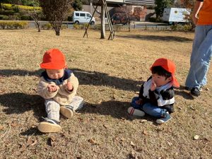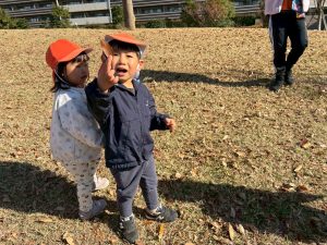 広場での追いかけっこを楽しんだり、自然物探しに夢中でした。