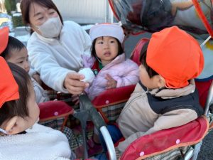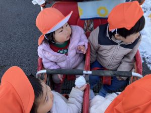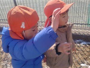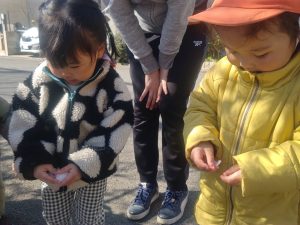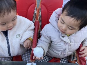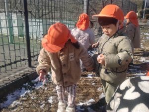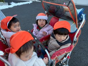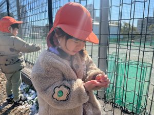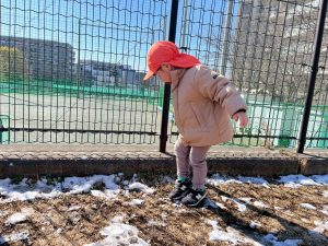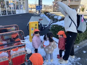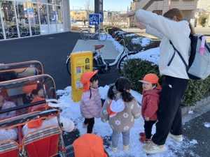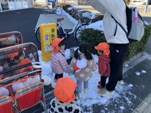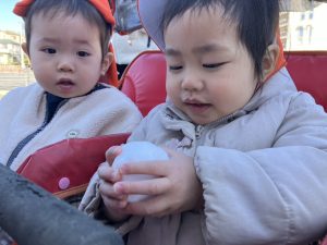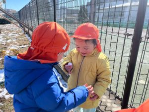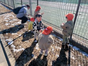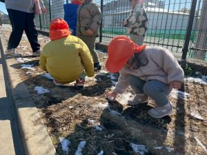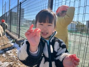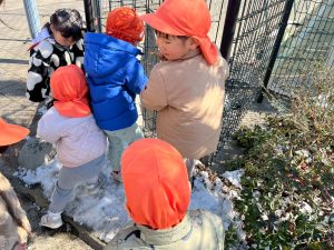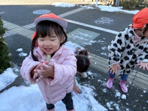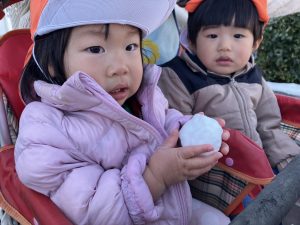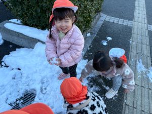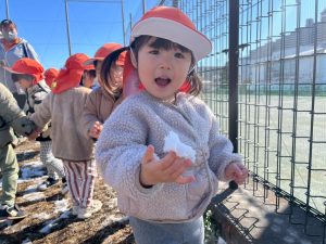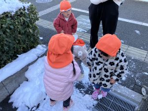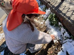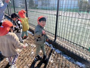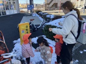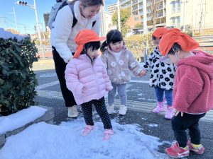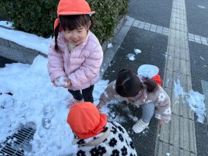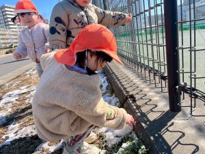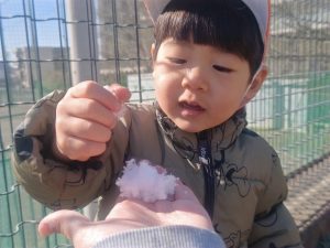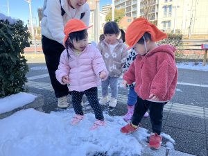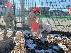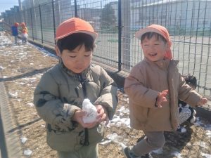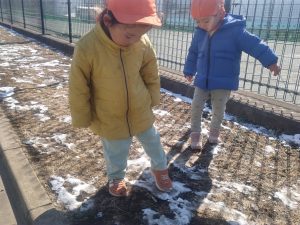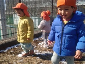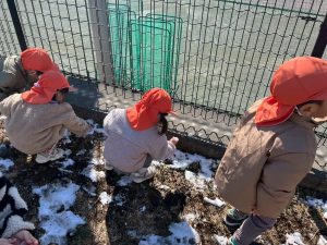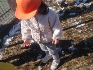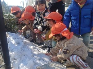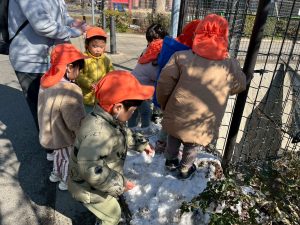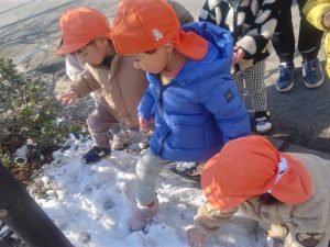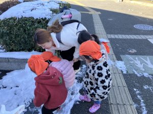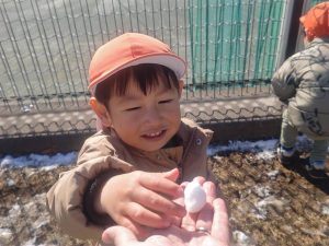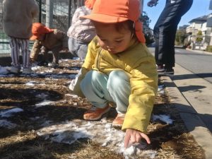 先週末に降った雪が残っており「つめたーい!」と皆で感触を味わっておりました。