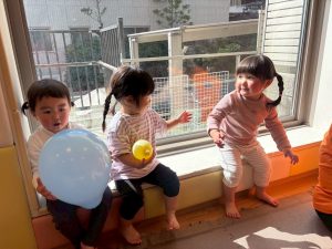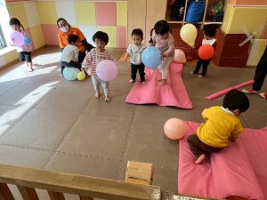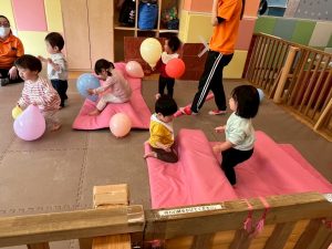 3月製作を楽しんだり、風船を使用してたくさん体を動かして遊びました。