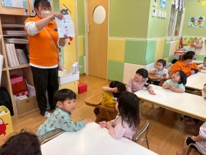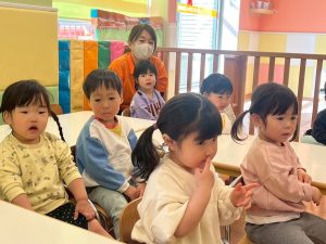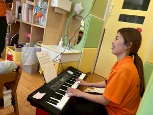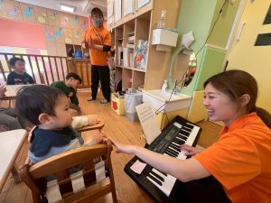みんなに好きな物をインタビューして、その答えを音階で表し、聞き取った音やリズムを当てるクイズも行って、盛り上がっております♪
