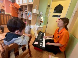 今月は、お子様たちの更なる「絶対音感」の習得に向けて、先生たちも日々、基準となる音の高さと比較して、その後に聞いた音の高さや音程・間隔を判別できる力「相対音感」を身につけながら活動に励んでおります☆