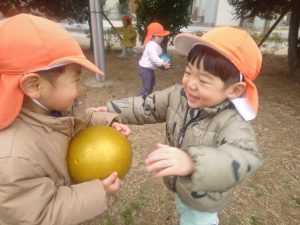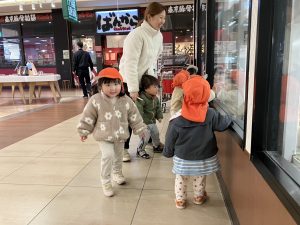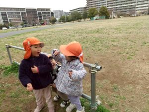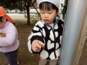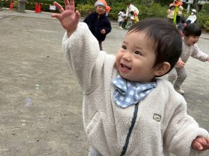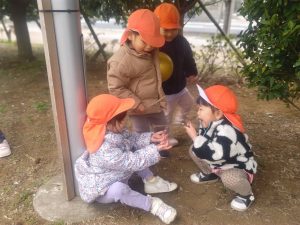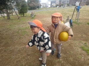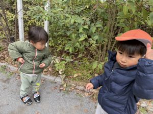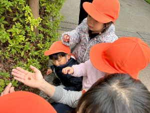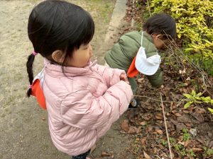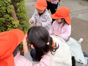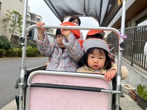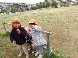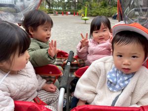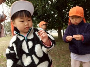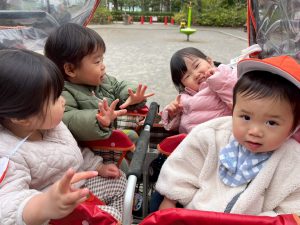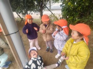 日中は年齢別に分かれて戸外散歩を行いました。