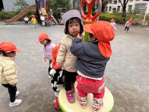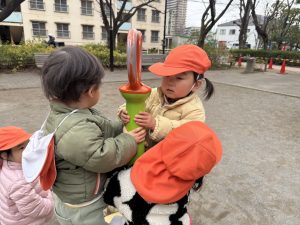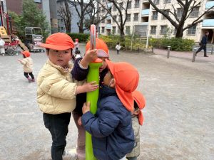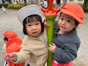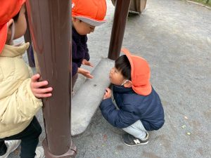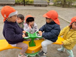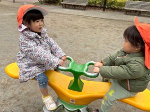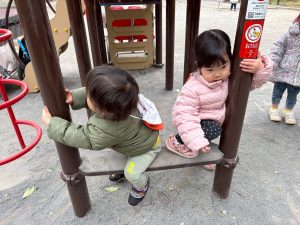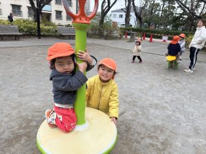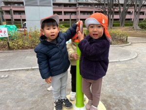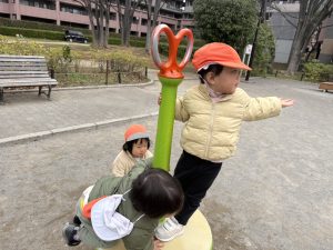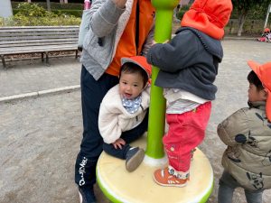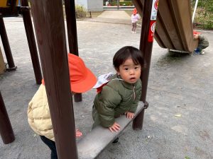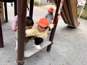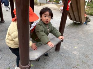 固定遊具を使用してたくさん体を動かしたり、公園内を楽しく冒険しました。