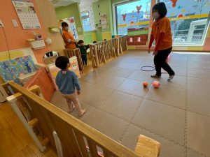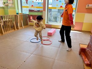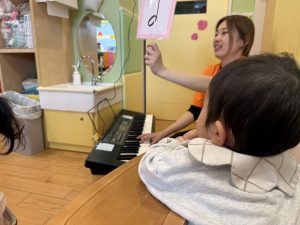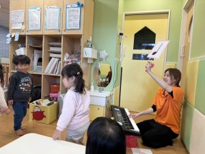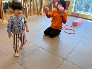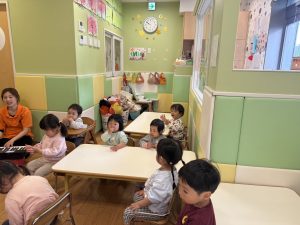 2歳児クラスのお友だちを中心に、歌う声に強弱をつけたり、奏でるリズムの速度を変えたり、聞こえてくる音に「ドレミファソ~」と音階をつけられるようになったり、とても一生懸命なお子様たちの姿が見られておりました!