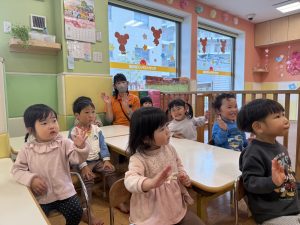 2月のリトミックの歌は、「おおきなたいこ」と「手をたたきましょう」の2曲です♪