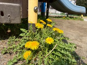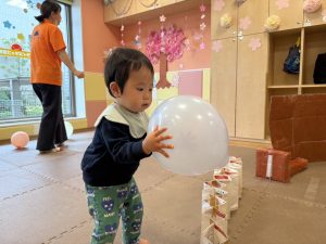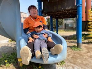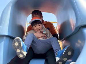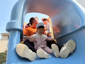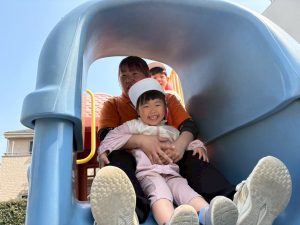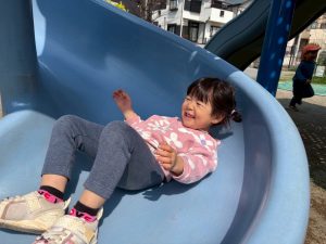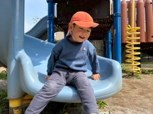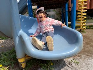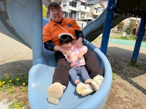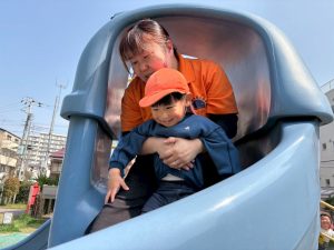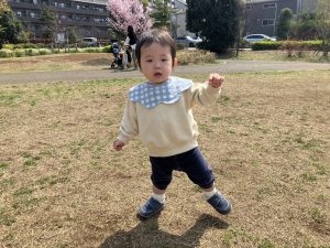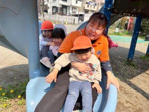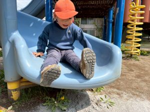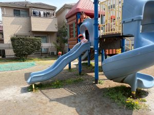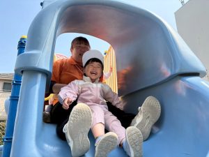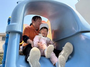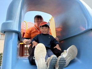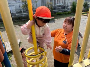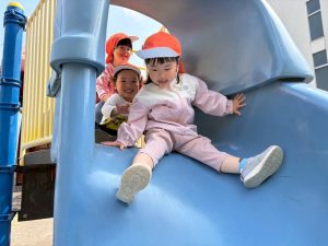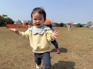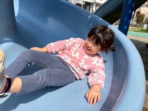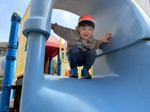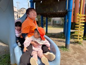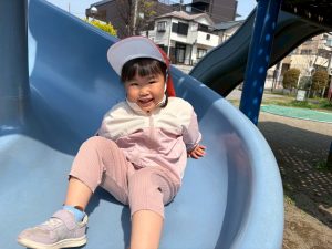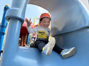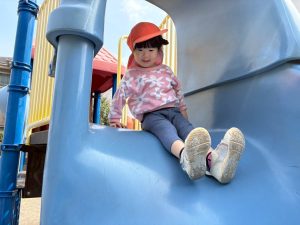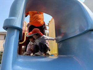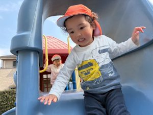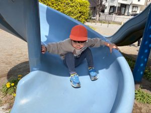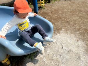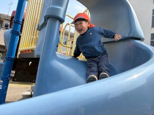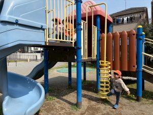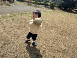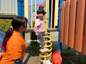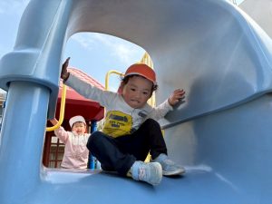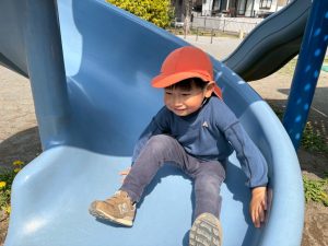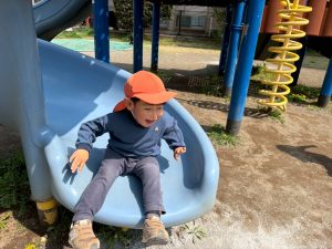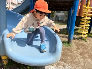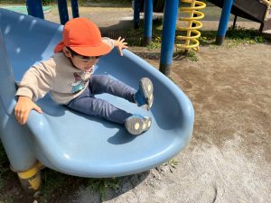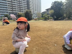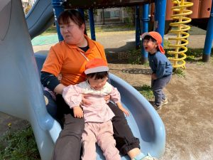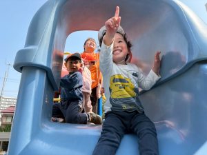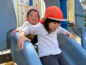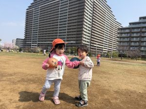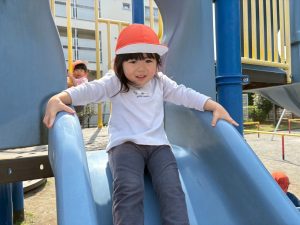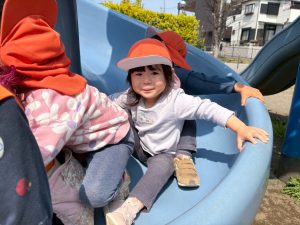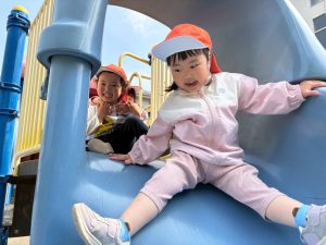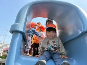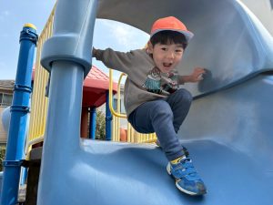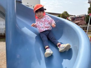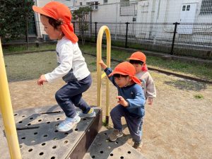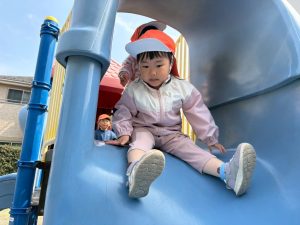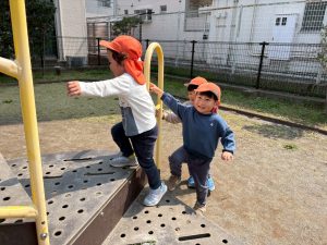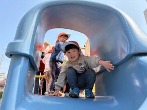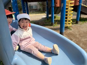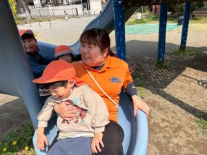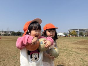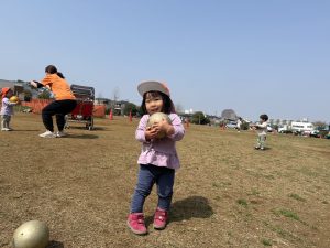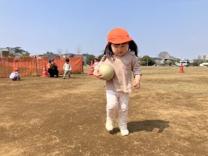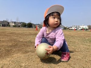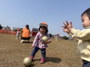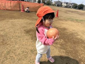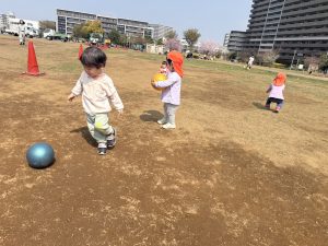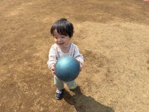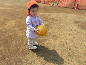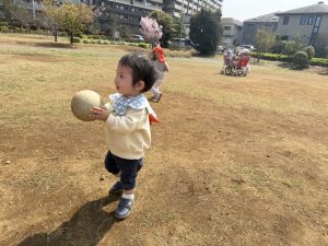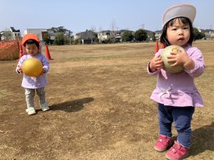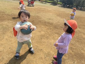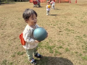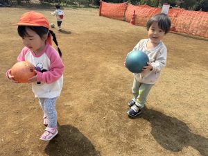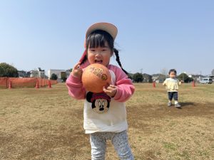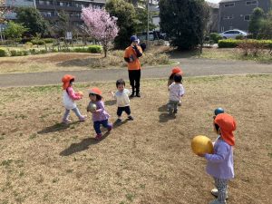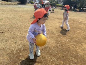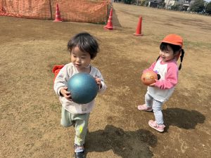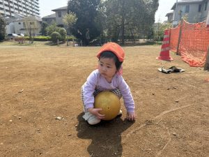 暖かい日差しの下公園の遊具やゴムボールを使用してたくさん体を動かして遊びました。