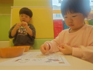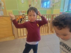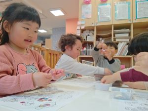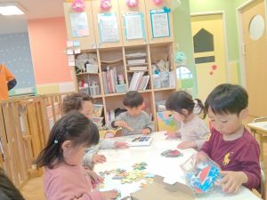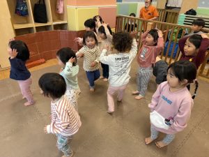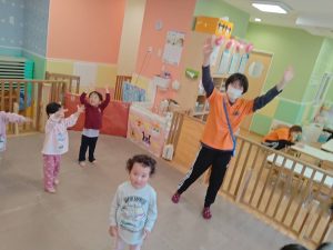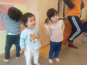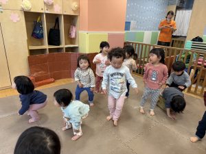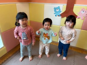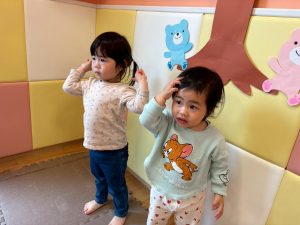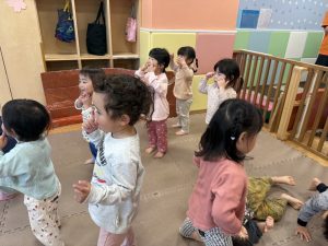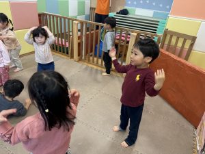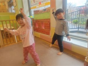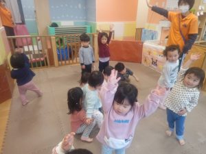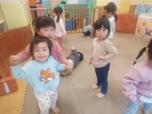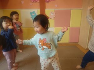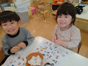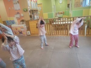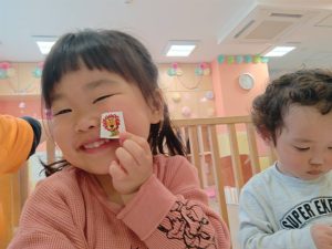 リズム体操でたくさん体を動かしたりシール遊びを楽しみました。